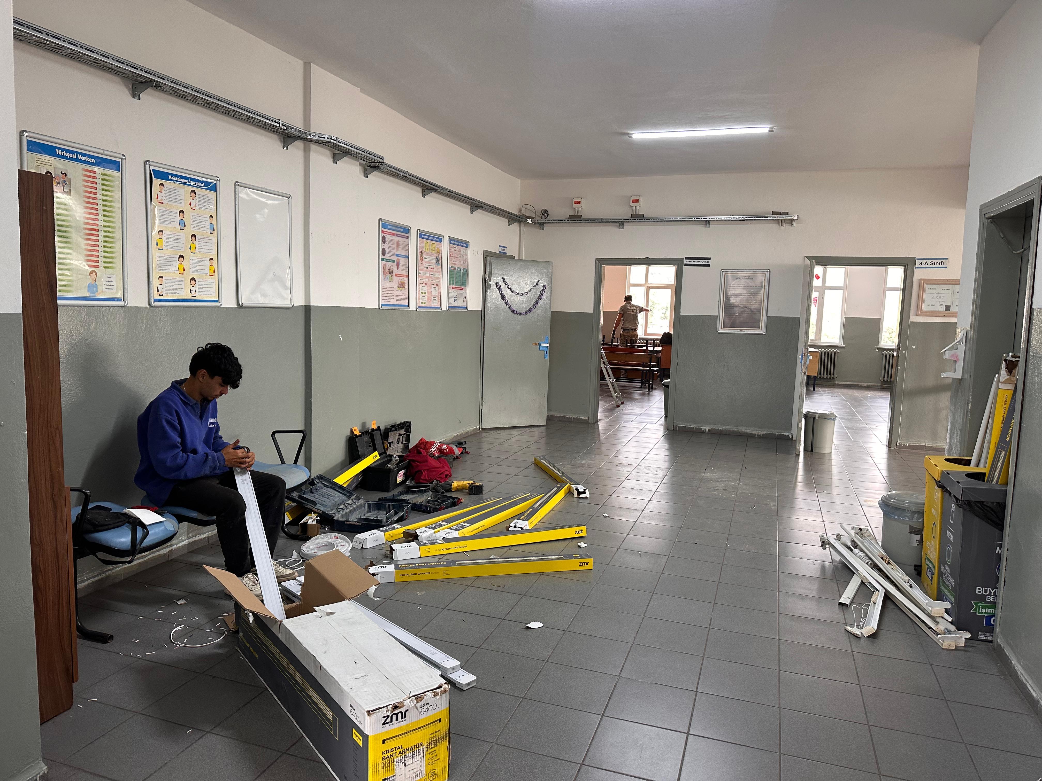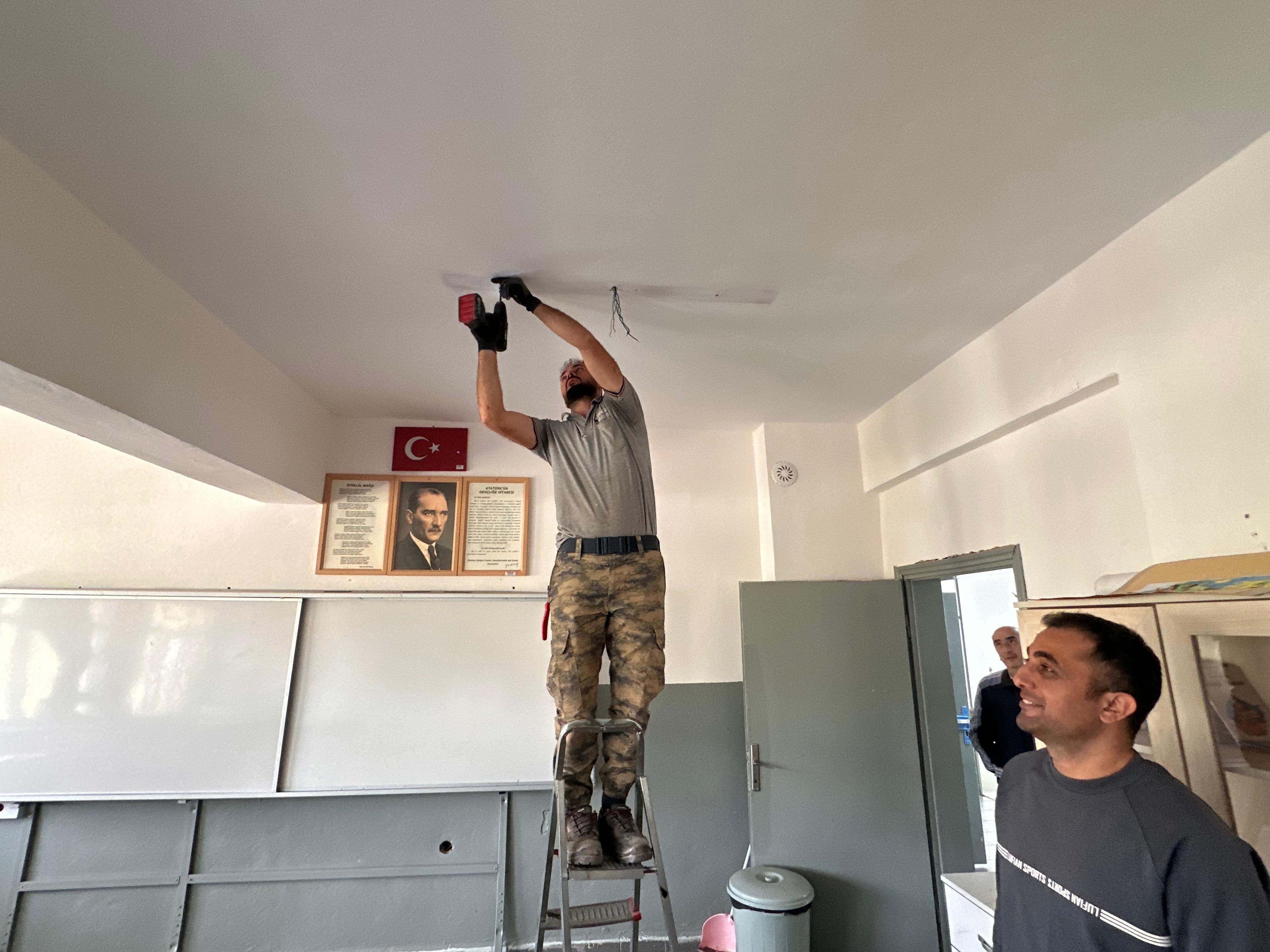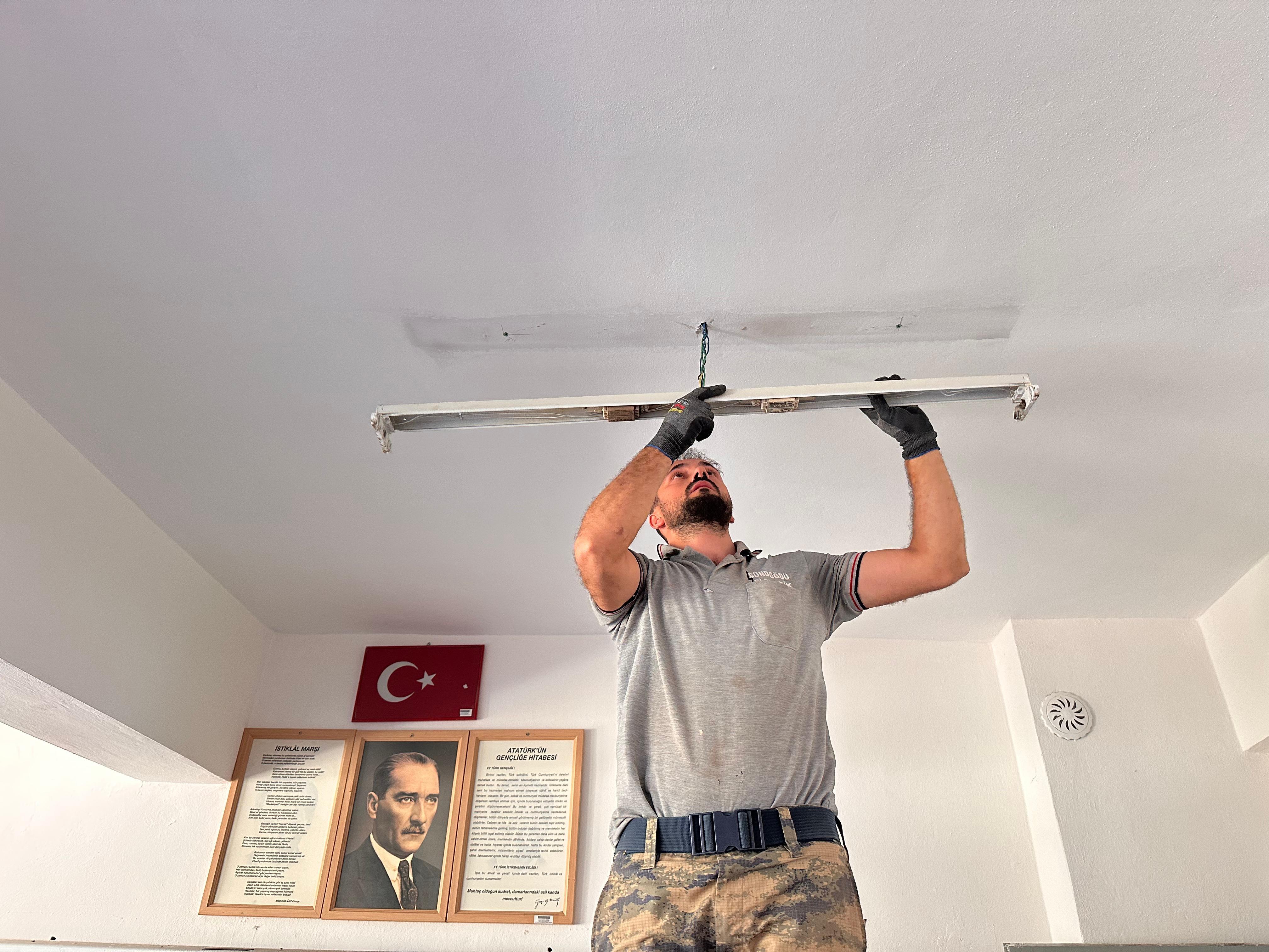 Karahamza Şehit Ahmet Karadağ İlk/Ortaokulunda Aydınlatma Yenileniyor