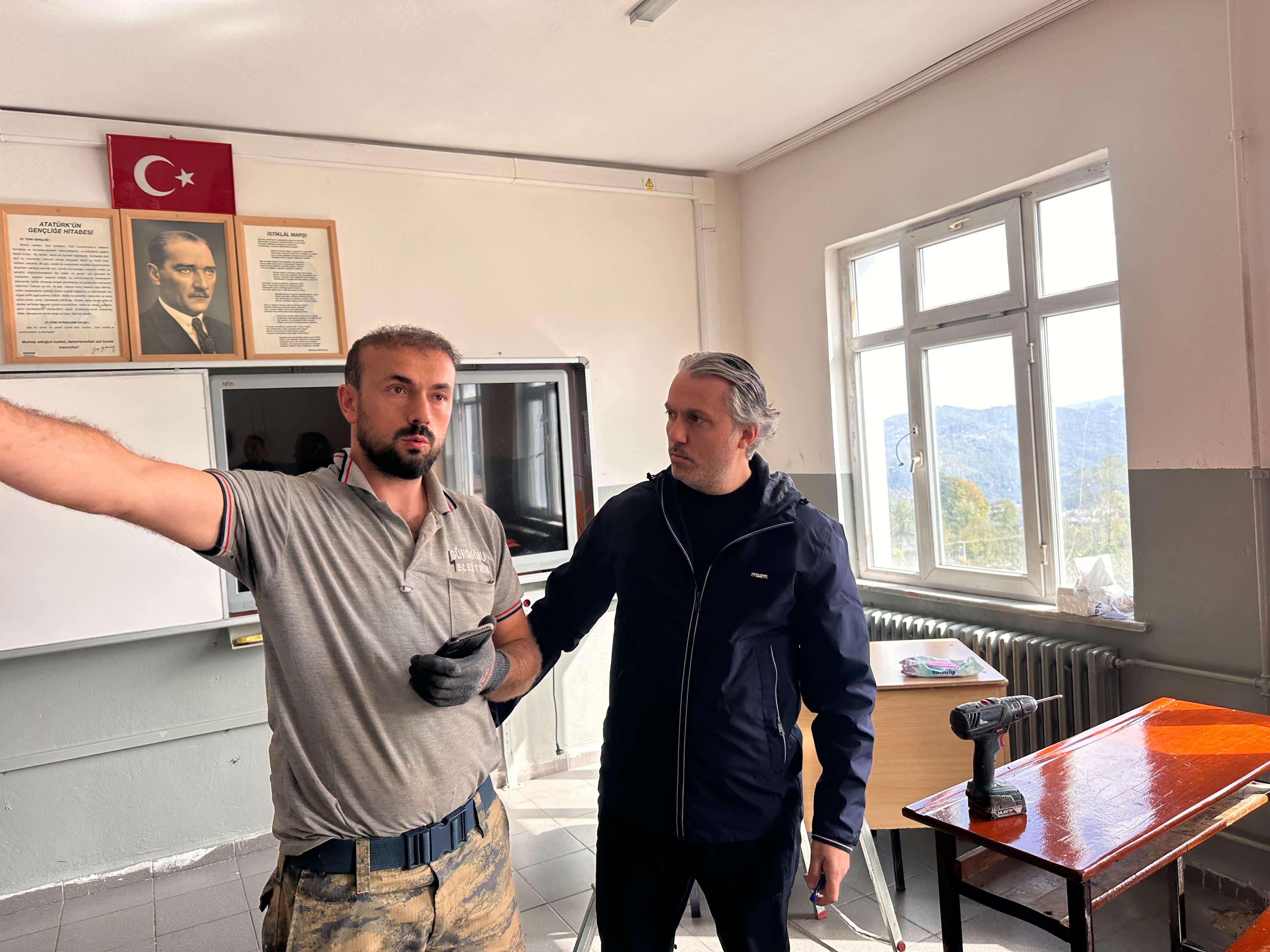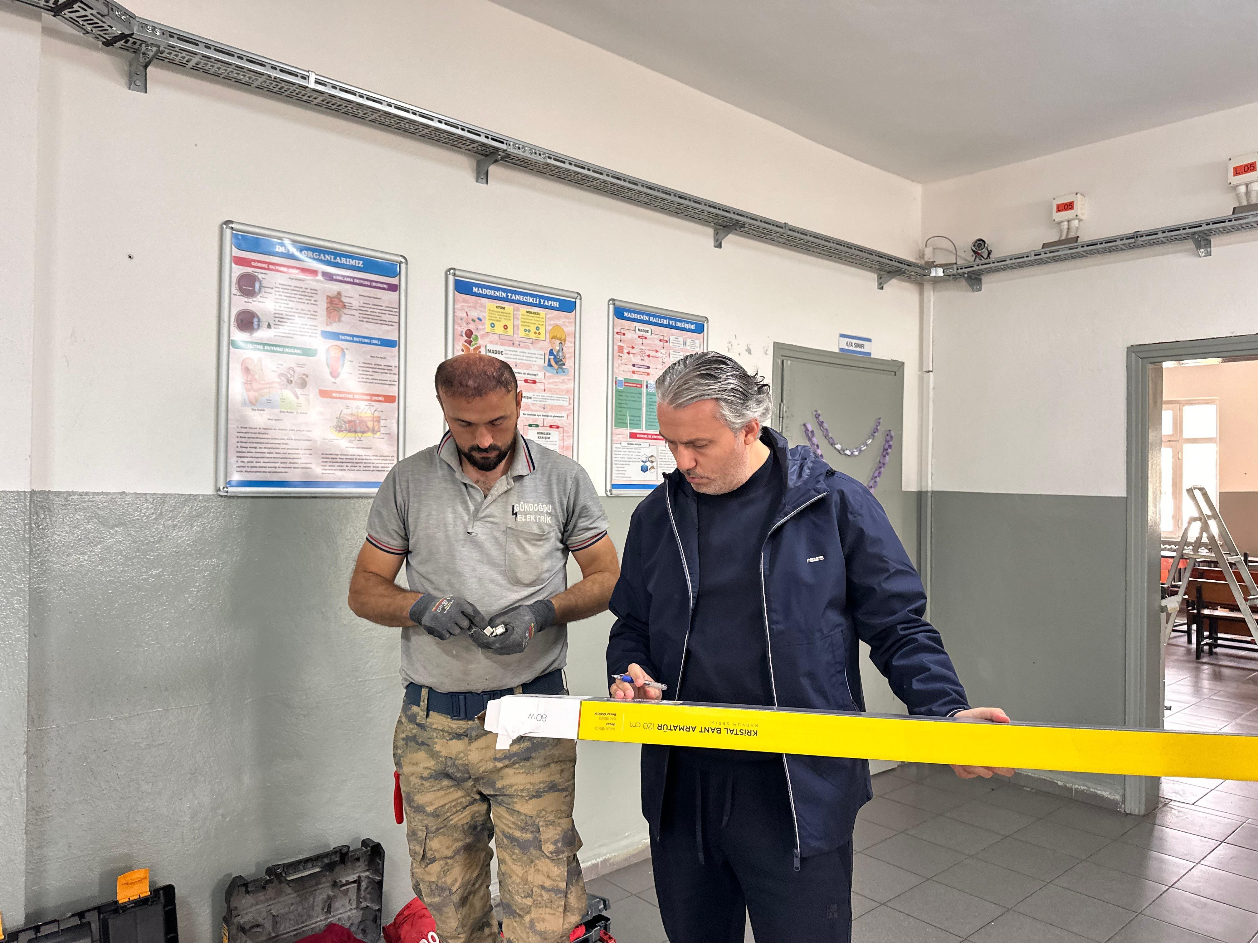 Müdürümüz Sayın Hasan ACU ve Şube Müdürümüz Sayın Muhammet ANCAZA yapılan çalışmaları yerinde inceleyerek sürecin öğrencilerimize daha aydınlık, sağlıklı ve verimli bir ortam sunacağını vurguladı.