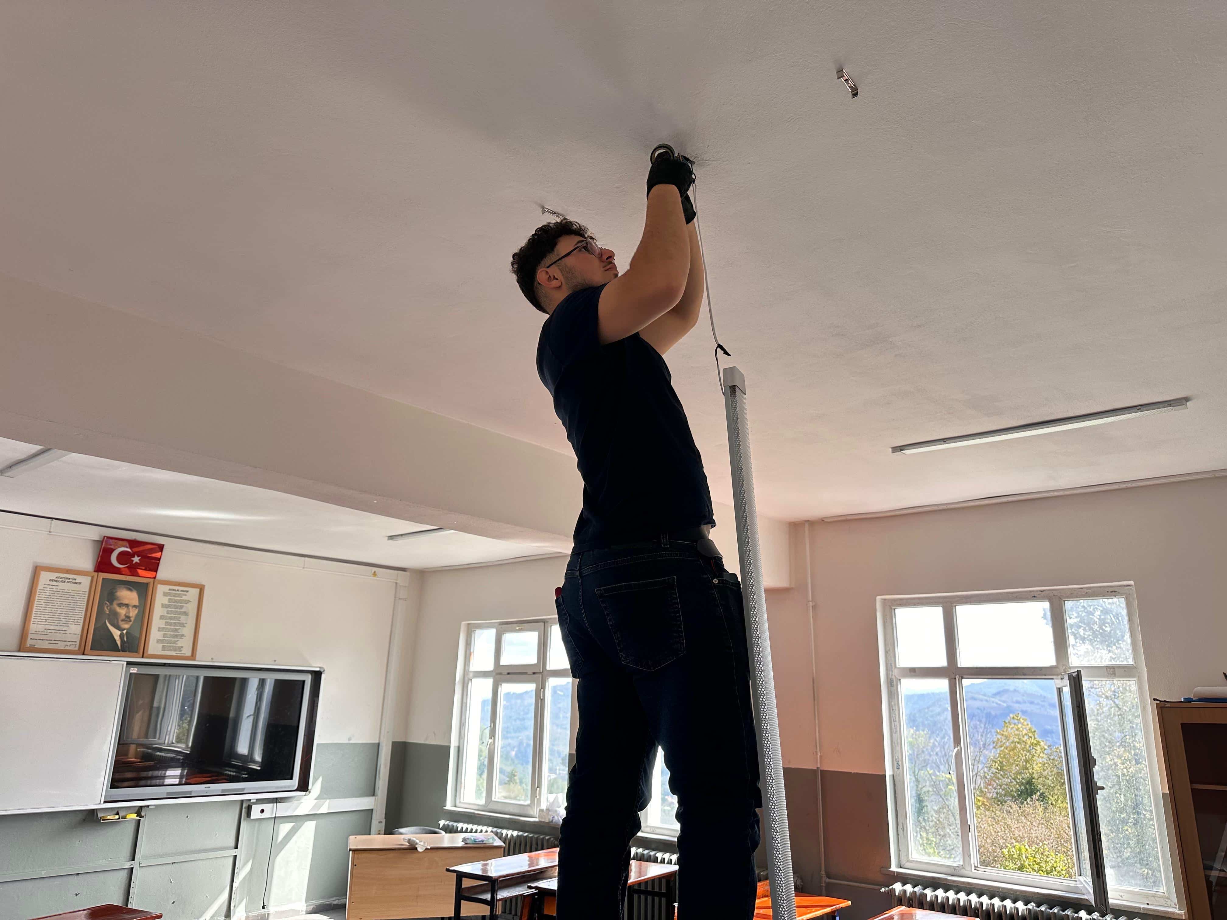 Yapılan bu dönüşümle tüm aydınlatmalar LED sisteme dönüştürülüyor. Böylece öğrencilerimiz için daha modern bir öğrenme ortamı sağlanırken, enerji tüketiminde de önemli ölçüde tasarruf elde edilmiş olacak.
